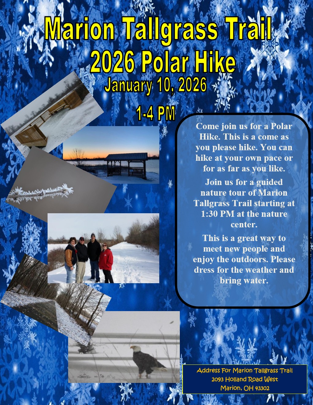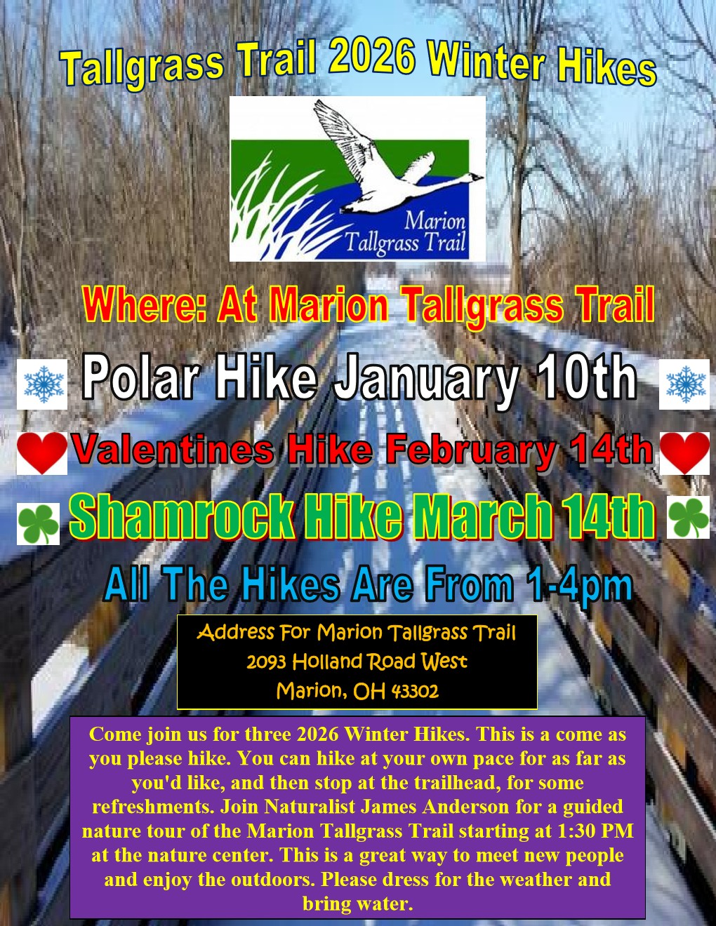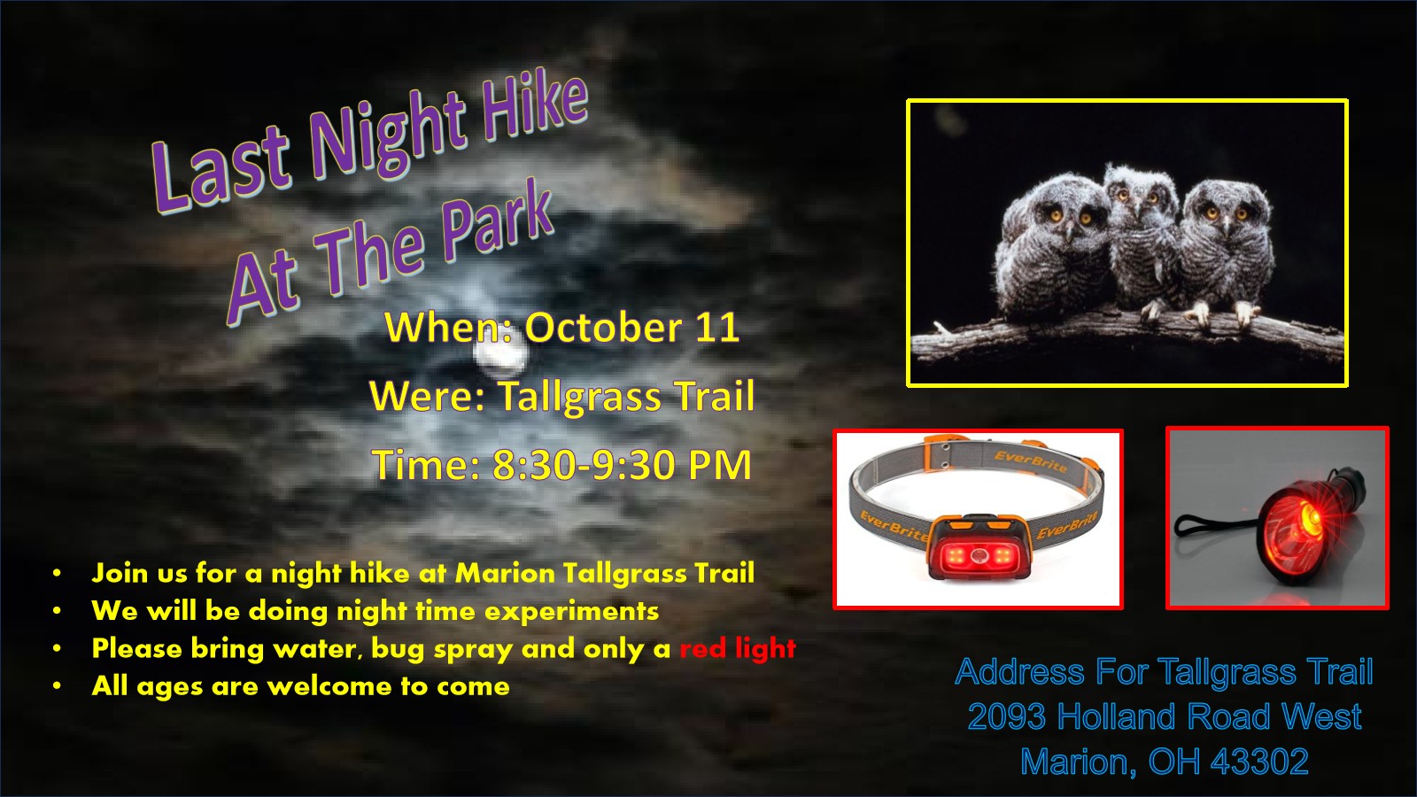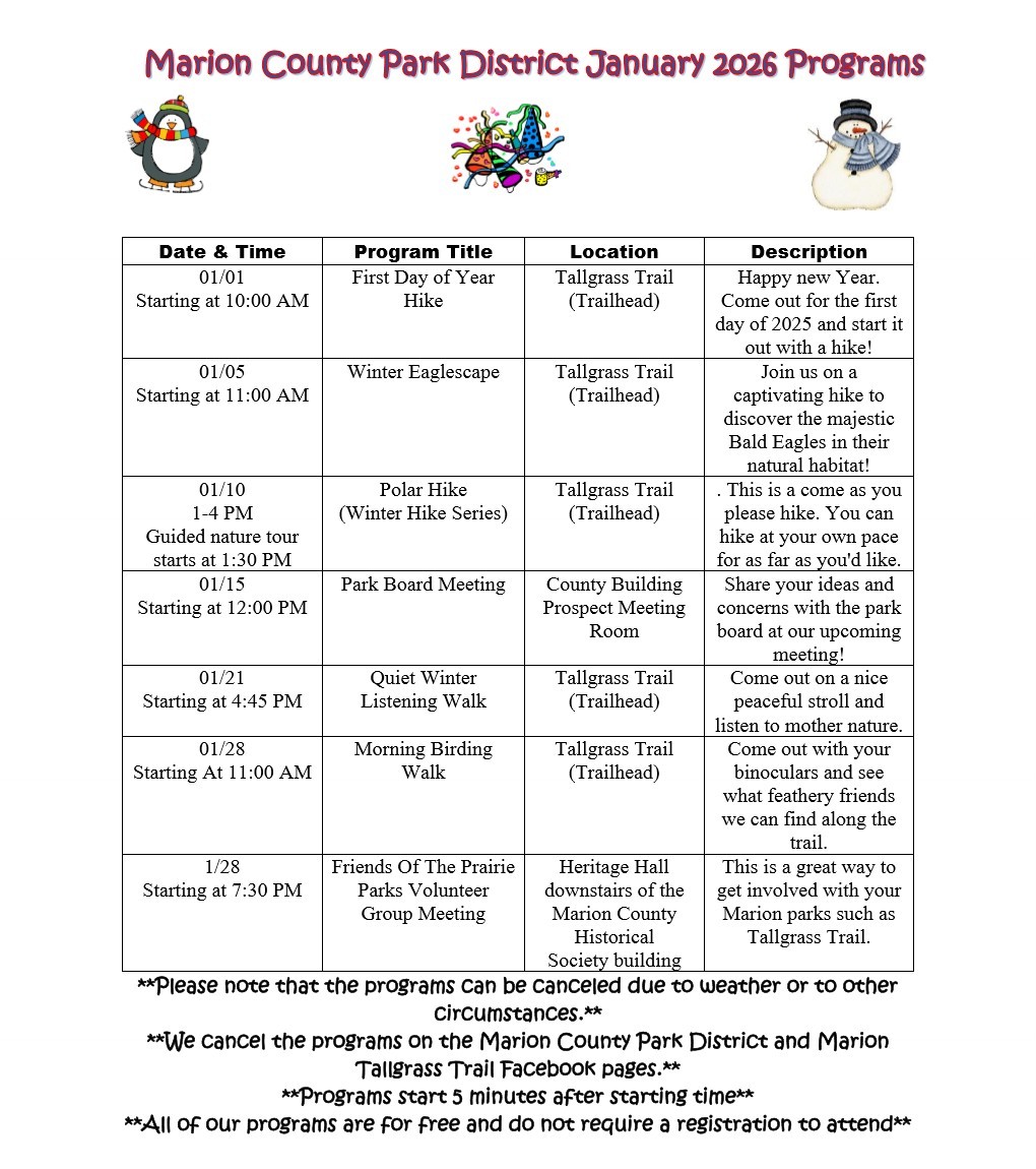 - ** We cancel the programs on the Marion County Park District and Marion Tallgrass Trail Facebook pages.