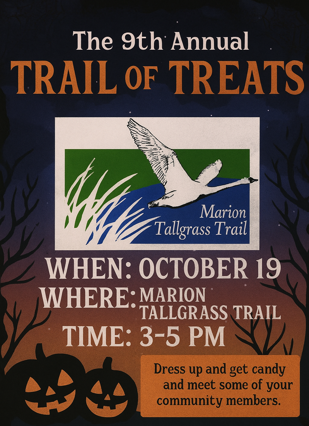 Marion Tallgrass Trail: This paved multi-use recreational trail is 12.44 miles long, reaching the Hardin County line. An adaptive bike share program is available by reservation for individuals with physical challenges.